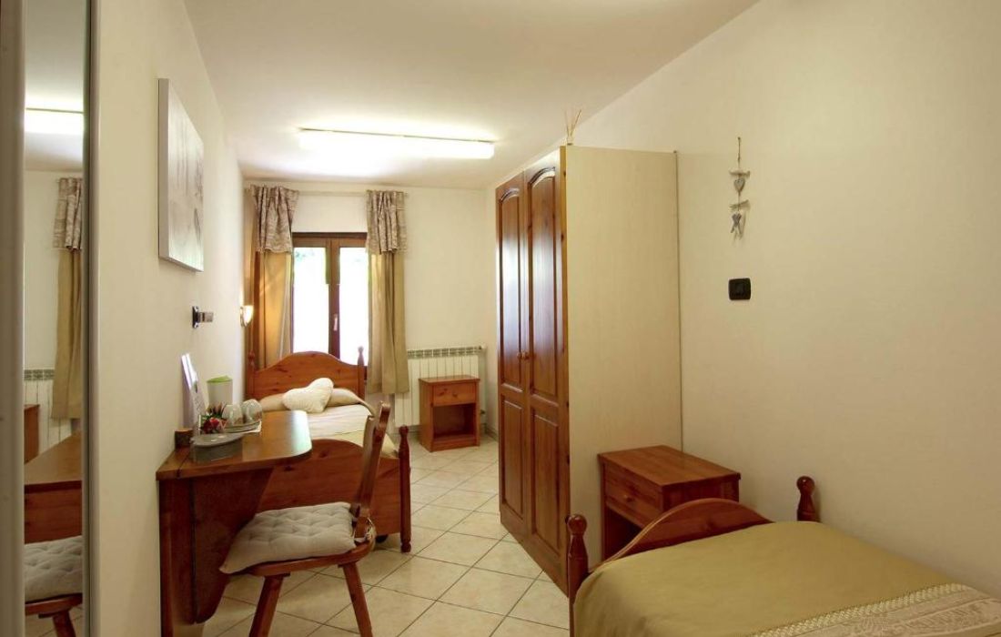 La camera FIOR DI ROCCIA si trova al primo piano dell’Ostello ed è una elegante cameretta con 2 letti singoli. Non è dotata di TV per motivi di spazio ma è possibile usufruire di quella del salottino adiacente. Servizi: Bagno con wc, bidet, lavandino e doccia in comune con le due stanze adiacenti.