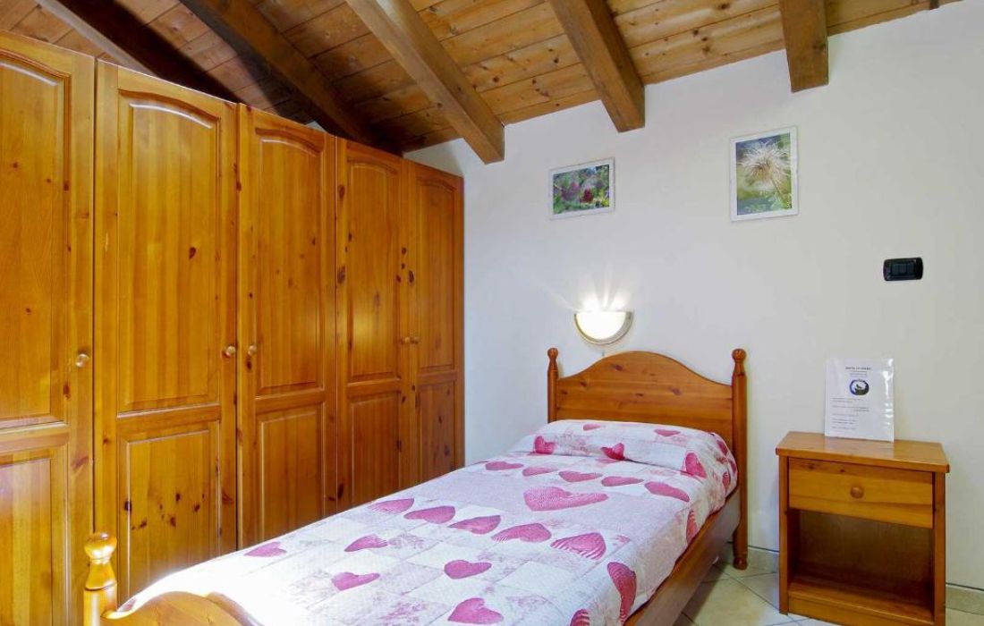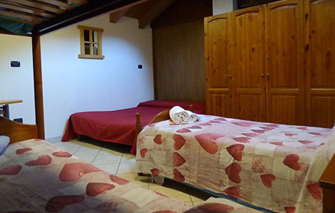RODODENDRO è composta da un letto a castello, un singolo ed un divano letto matrimoniale. Servizi: Bagno con doccia in camera