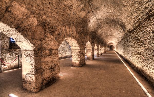 Il criptoportico, che faceva parte del complesso del Foro, è una galleria semisotterranea sostenuta da arcate possenti.