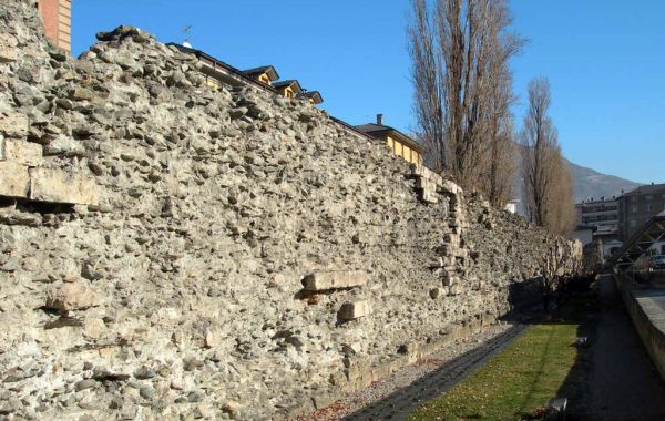 La cinta muraria di Augusta Praetoria raggiungeva un’altezza di circa 7 metri e tracciava un rettangolo di 724 x 572 metri.